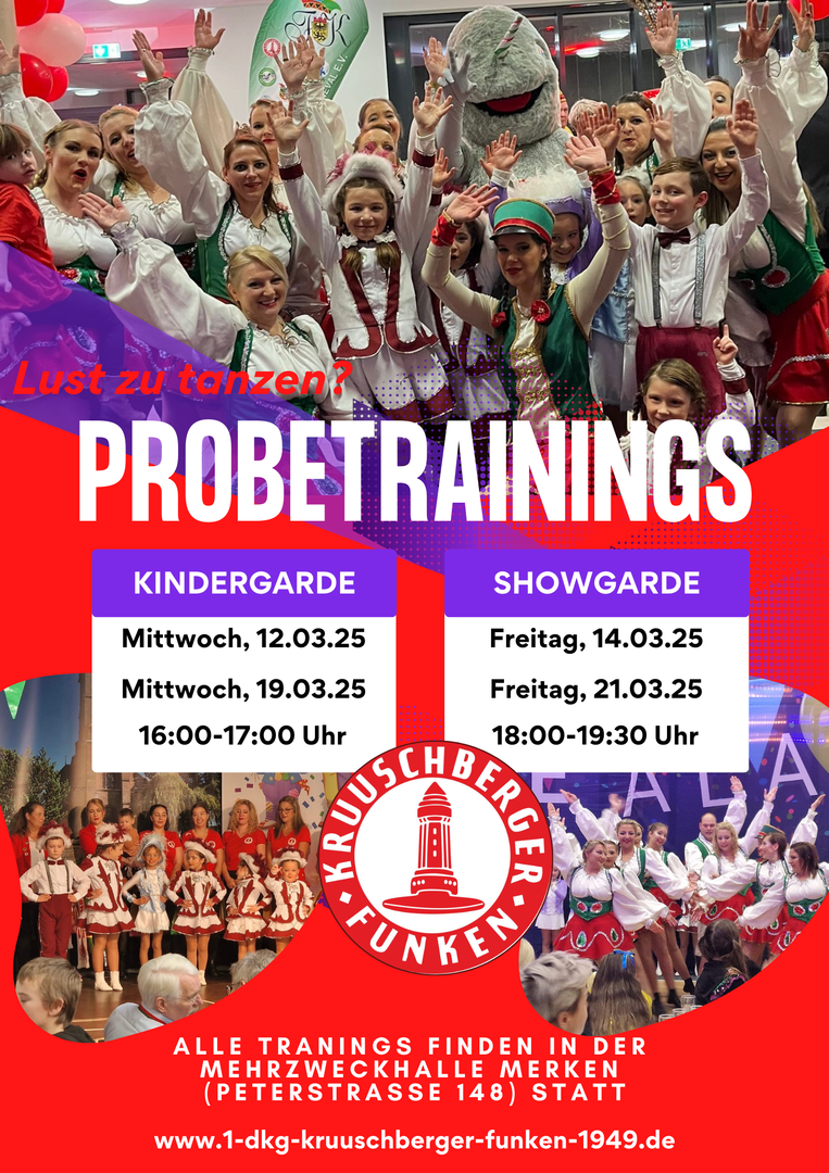 Wenn auch du Spaß am Tanzen und Lust hast, in einer tollen Truppe mit dabei zu sein, dann komm gerne zum unverbindlichen Probetraining vorbei und lerne uns kennen!